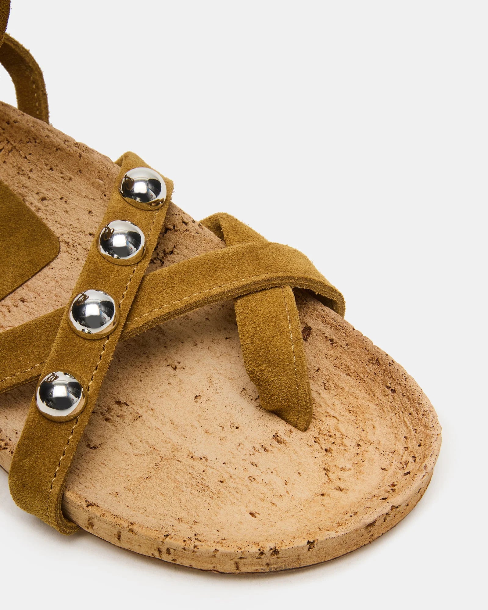 The KELSO features a strappy design adorned with subtle studs, combining edgy style with refined craftsmanship. Its flatform sole offers balanced height and comfort, making it ideal for all-day wear. Perfect for elevating casual or dressy looks, this sandal blends contemporary fashion with practical support.
