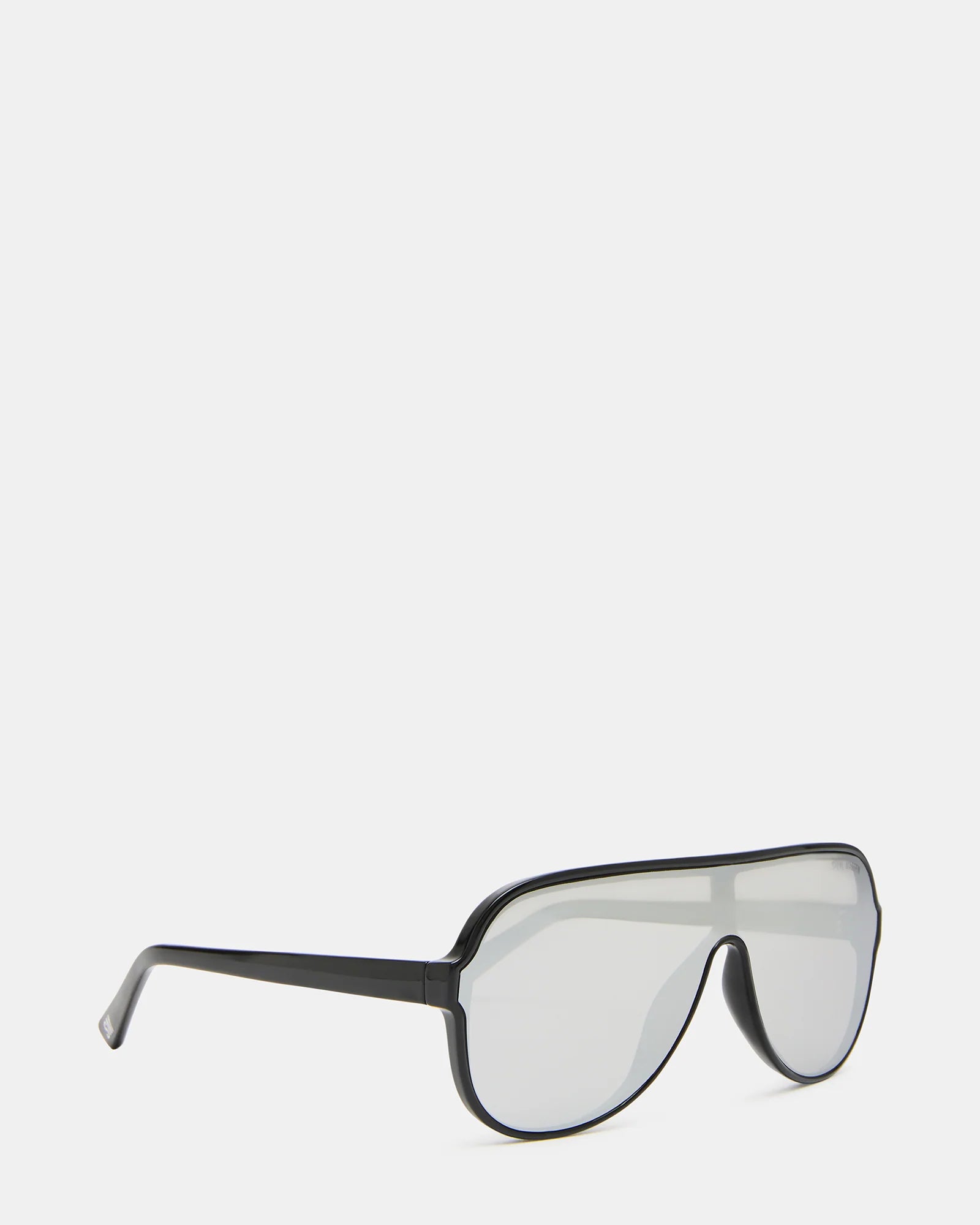 Enjoy crystal clear vision and stylish protection with our KERBIE SUNGLASSES BLACK. The opaque frame and silver flash lens adds a touch of glam to the sleek shield shape design. Make these sunglasses your go-to for any occasion.