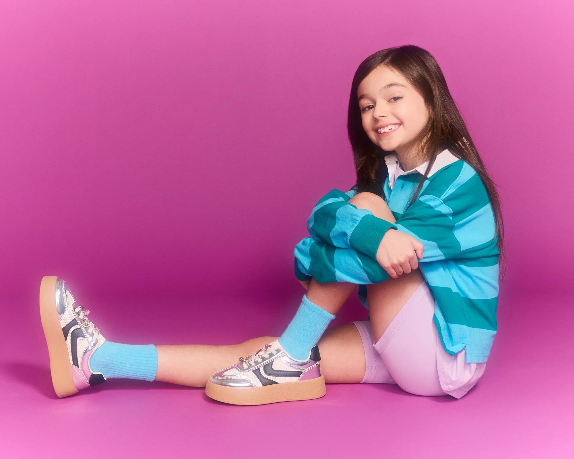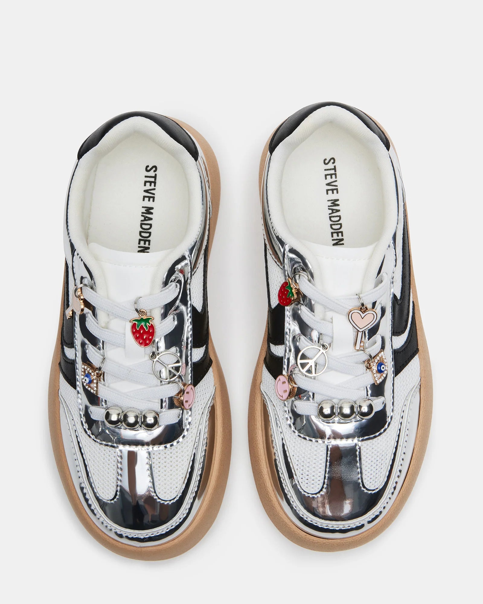 Introducing the JERSEY CHARMS - a trendy platform sneaker designed for active kids. With its low-top and lace-up design, this shoe provides both style and functionality for everyday wear. With its sleek silver color, your child will be the coolest kid on the block.