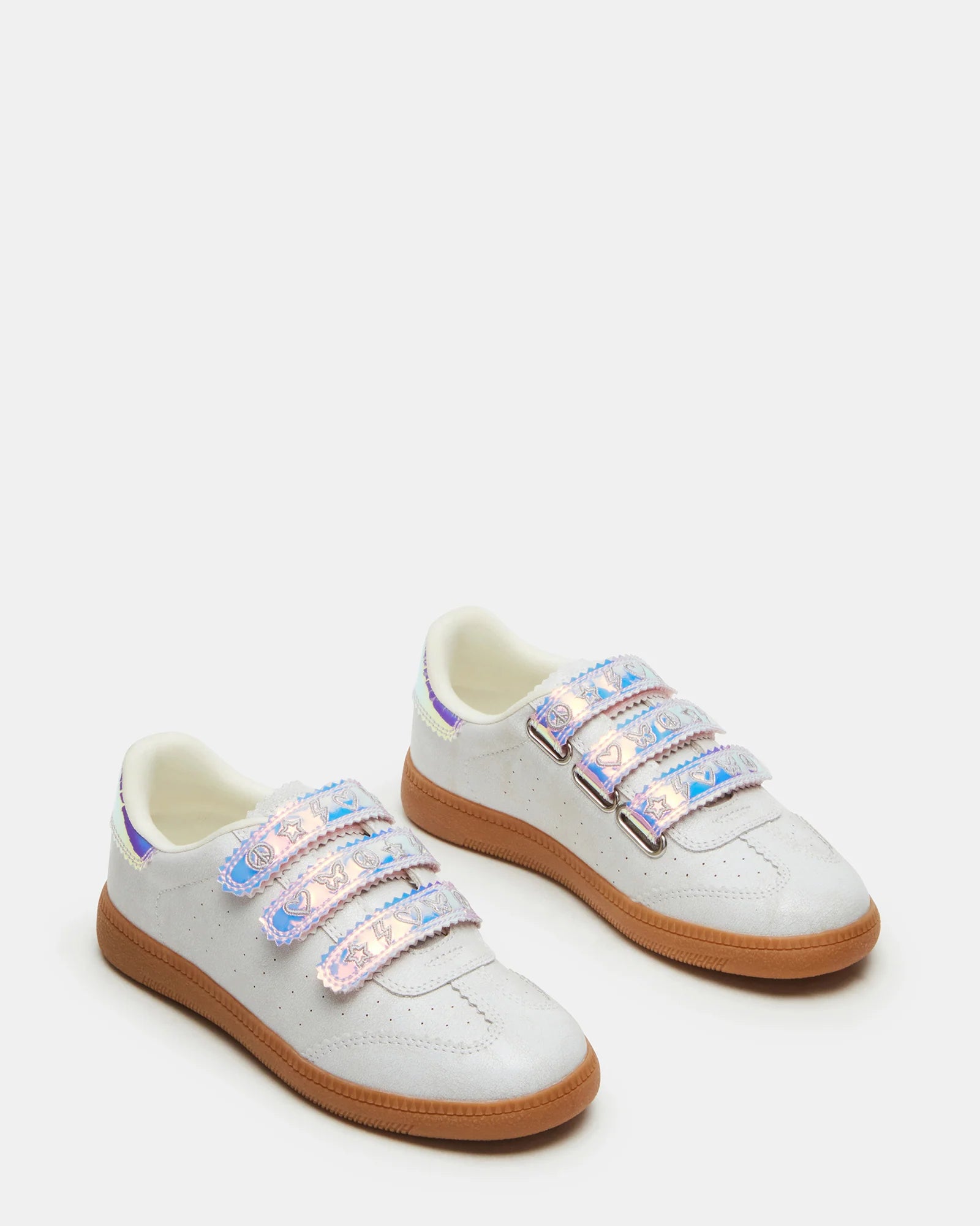 Introducing the MOMENTUM OFF WHITE FABRIC low-top Velcro sneaker. These sneakers are designed specifically for kids and offer a secure and easy Velcro closure, ensuring a snug fit for all-day comfort. Made with high-quality materials, give your child the support and style they need to stay active and comfortable.