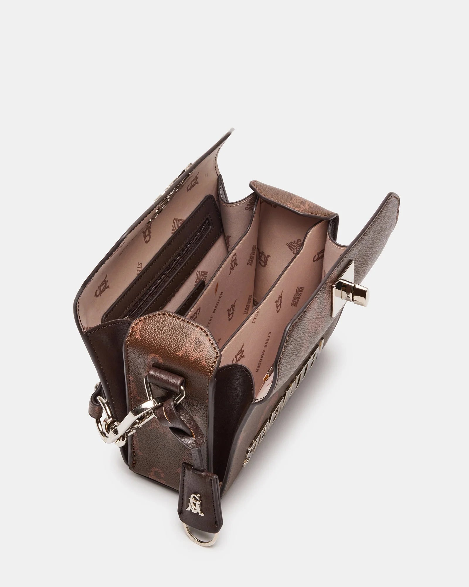 The KINDER Bag is a structured box purse featuring contrasting prints wrapped around the front and back and on the sides as well as on the interchangeable straps.