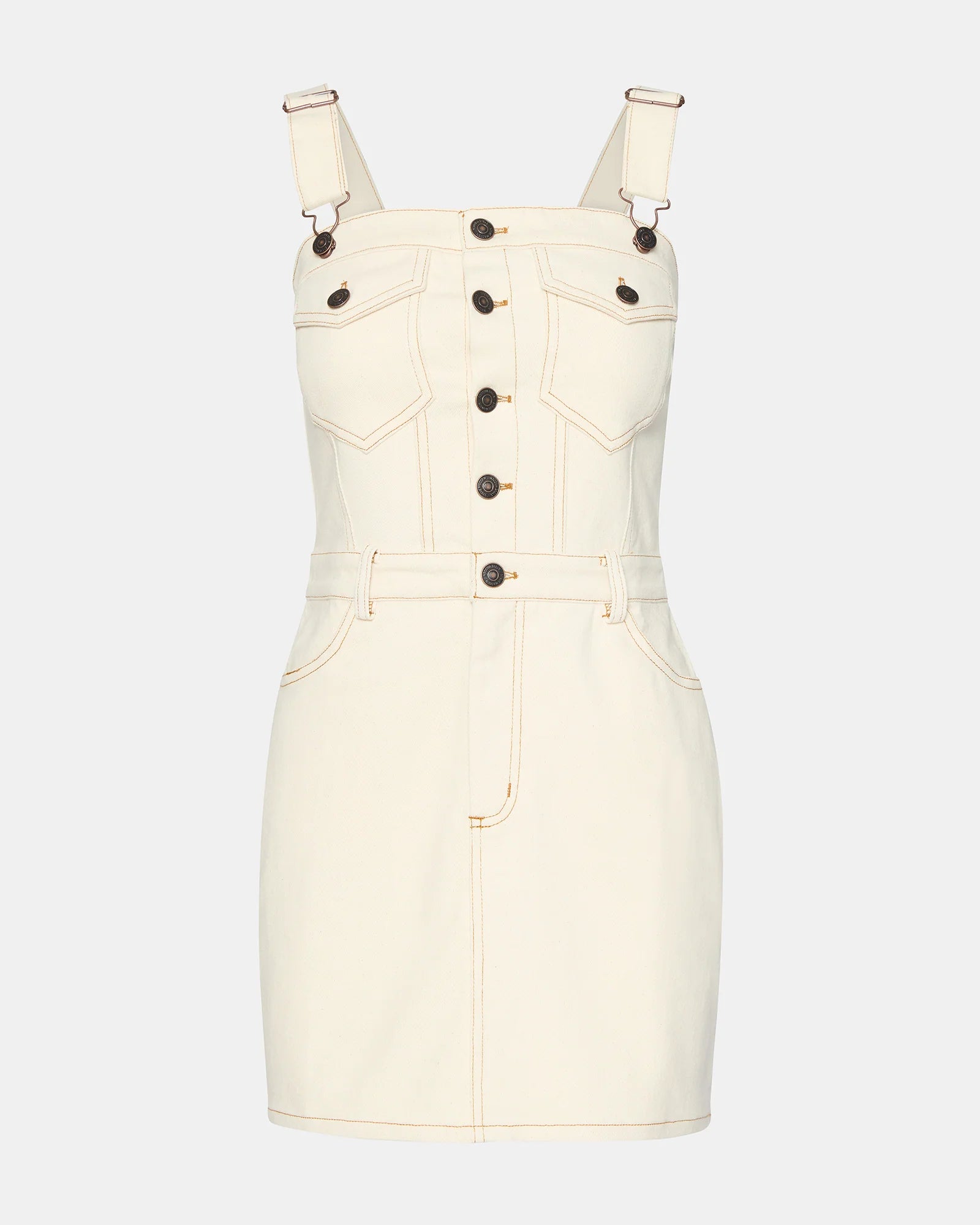 This LAKE features a versatile sleeveless overall denim style and a convenient button-up closure. Complete with pockets on the side, this mini dress combines practicality with fashion for a comfortable and chic look. Perfect for any occasion, this dress will elevate your wardrobe.