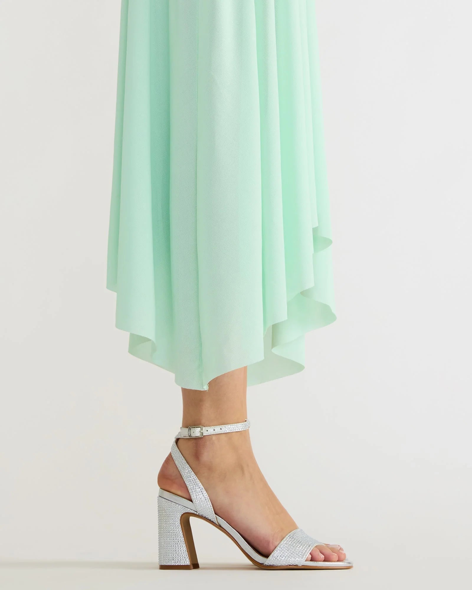 The LARAH RHINESTONES features a rounded toe and a sturdy block , offering both style and stability for all-day wear. Its secure ankle strap ensures a comfortable, locked-in fit that enhances confidence with every step. This design balances elegance and practicality, making it a versatile choice for various occasions.