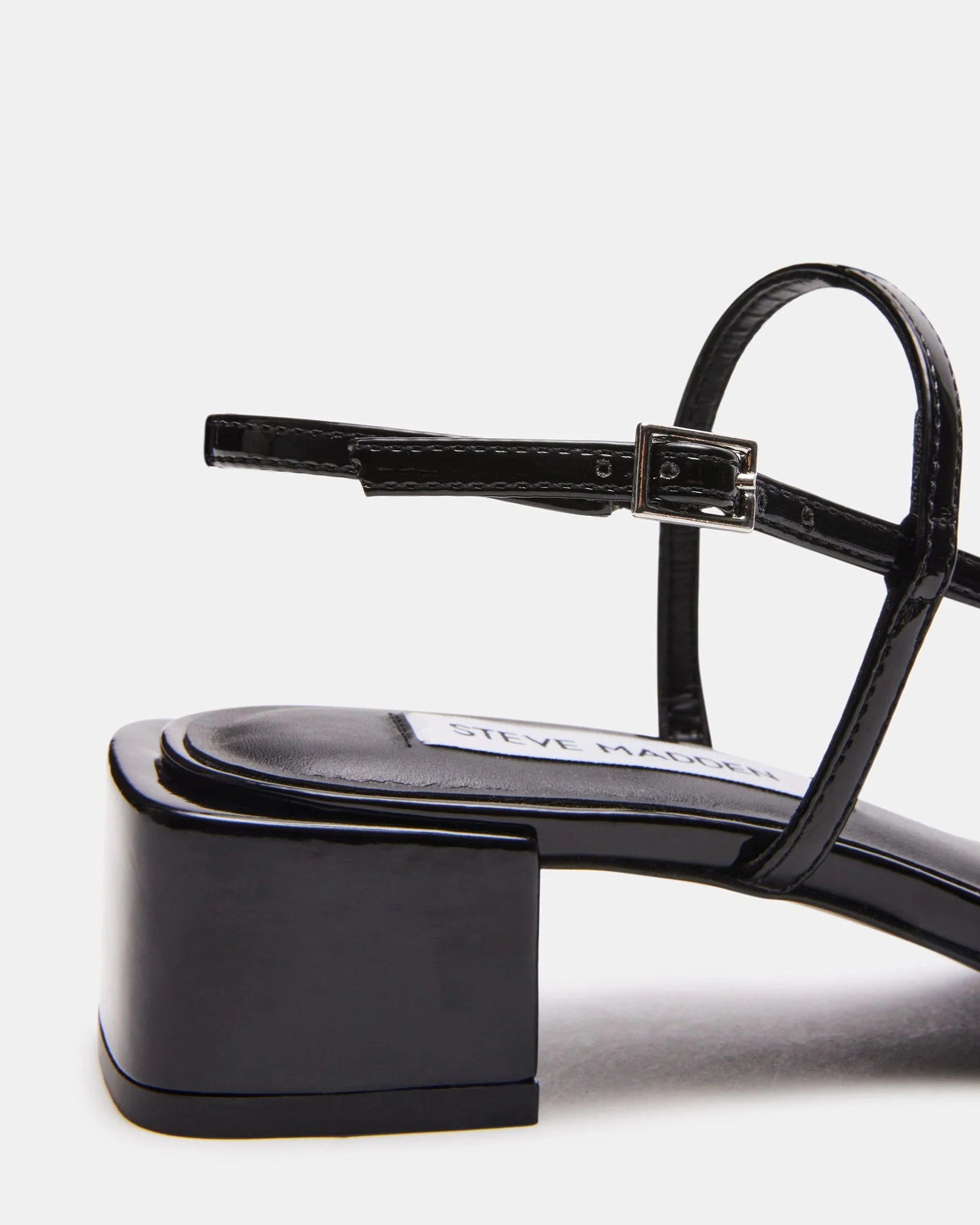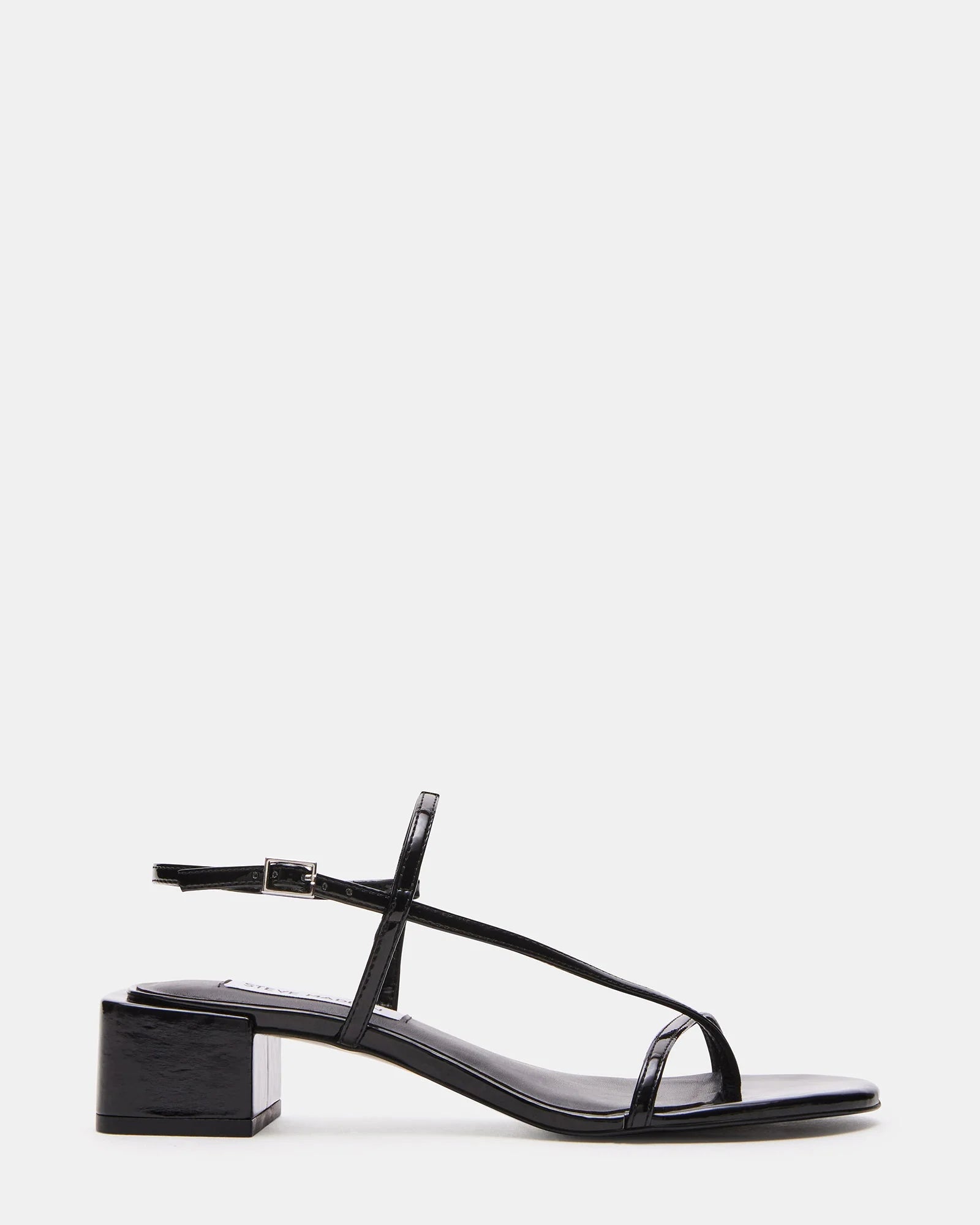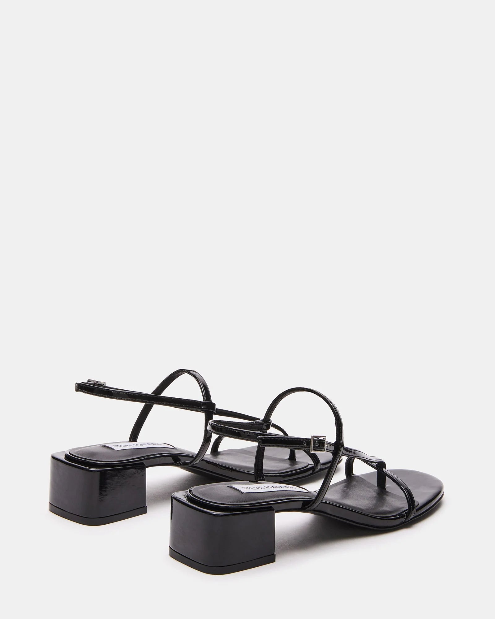 Delicate straps in a unique thong and slingback design secure the LEMONA dress to a comfortable low block heel.