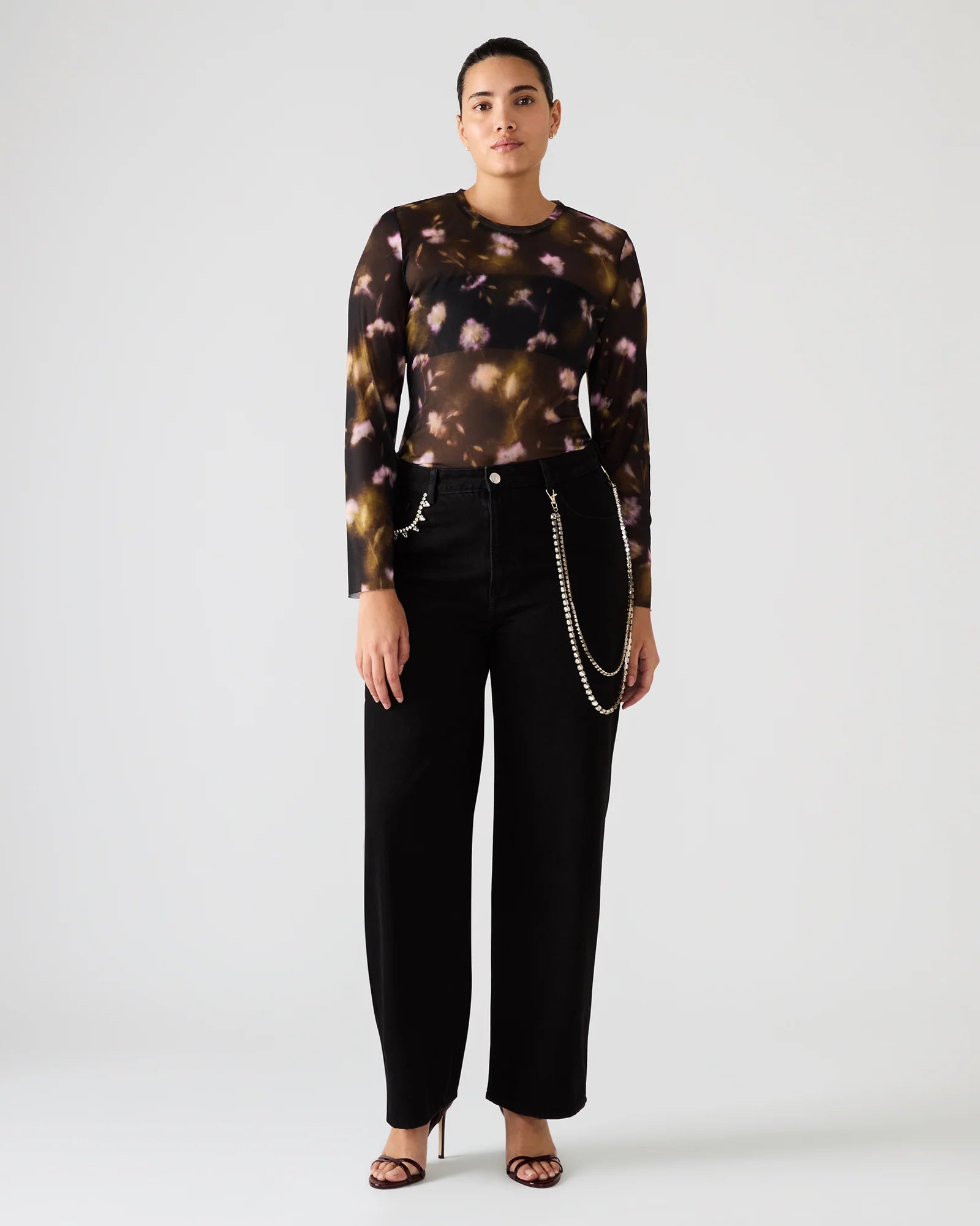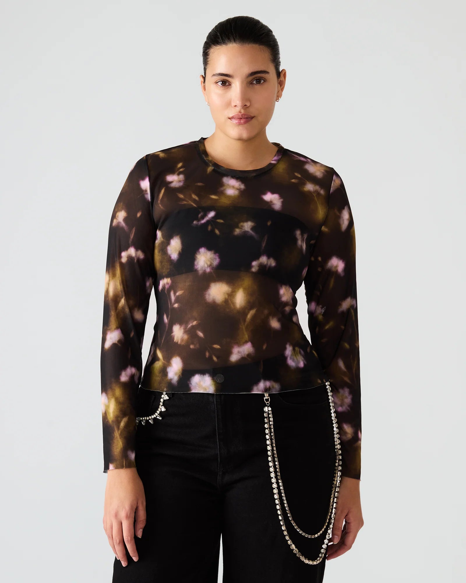 The LILIANA BLACK MULTI combines elegance and modern design with its long-sleeved silhouette crafted from breathable mesh fabric. Featuring a delicate floral print, this top adds a sophisticated touch to any outfit while offering lightweight comfort. Ideal for layering or wearing solo, it delivers a refined statement piece for versatile styling with both casual and dressier looks.