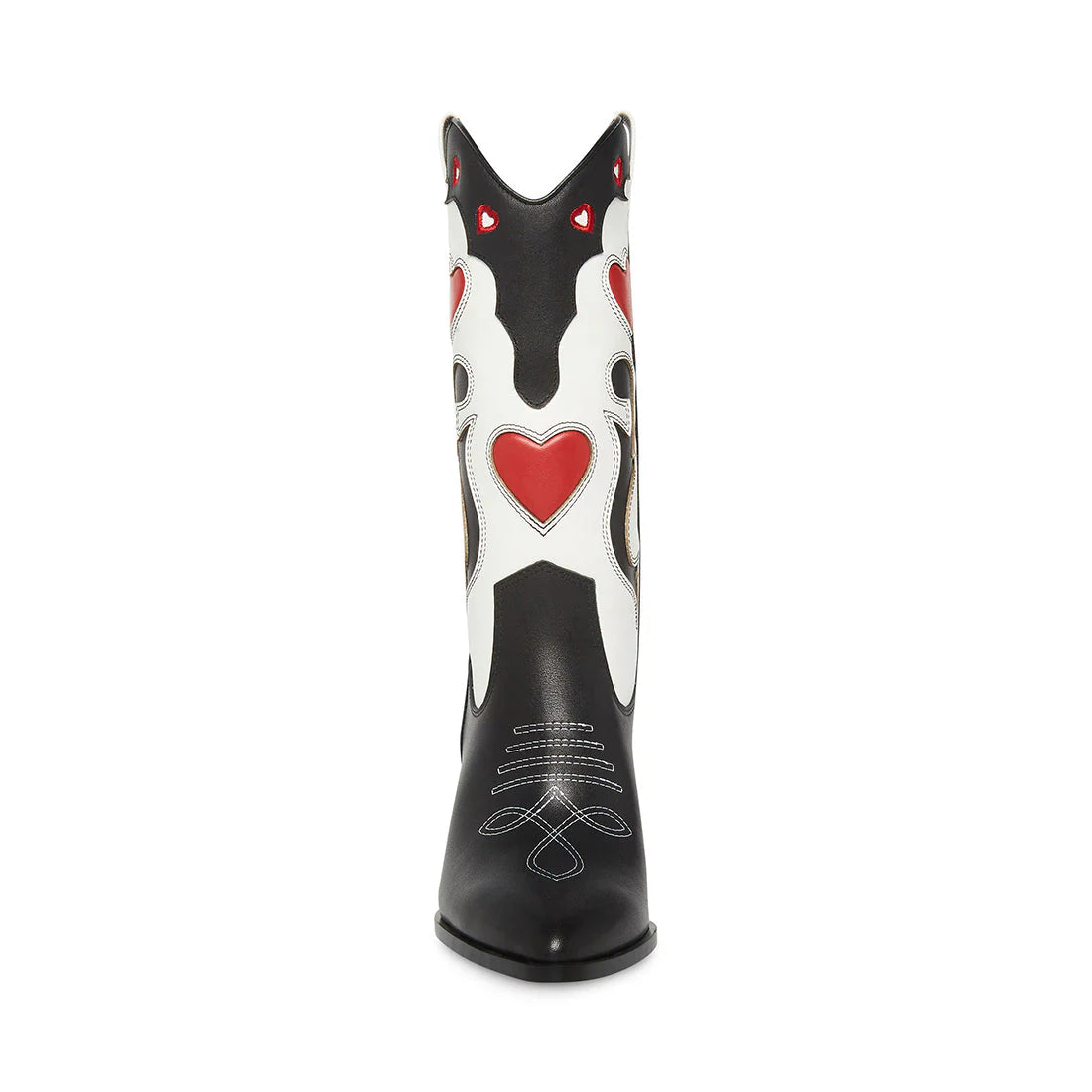 The LOVESTRUCK takes the classic high heel boot silhouette and adds intricate panel cuts and stitching for a western-inspired design with a heart motif.