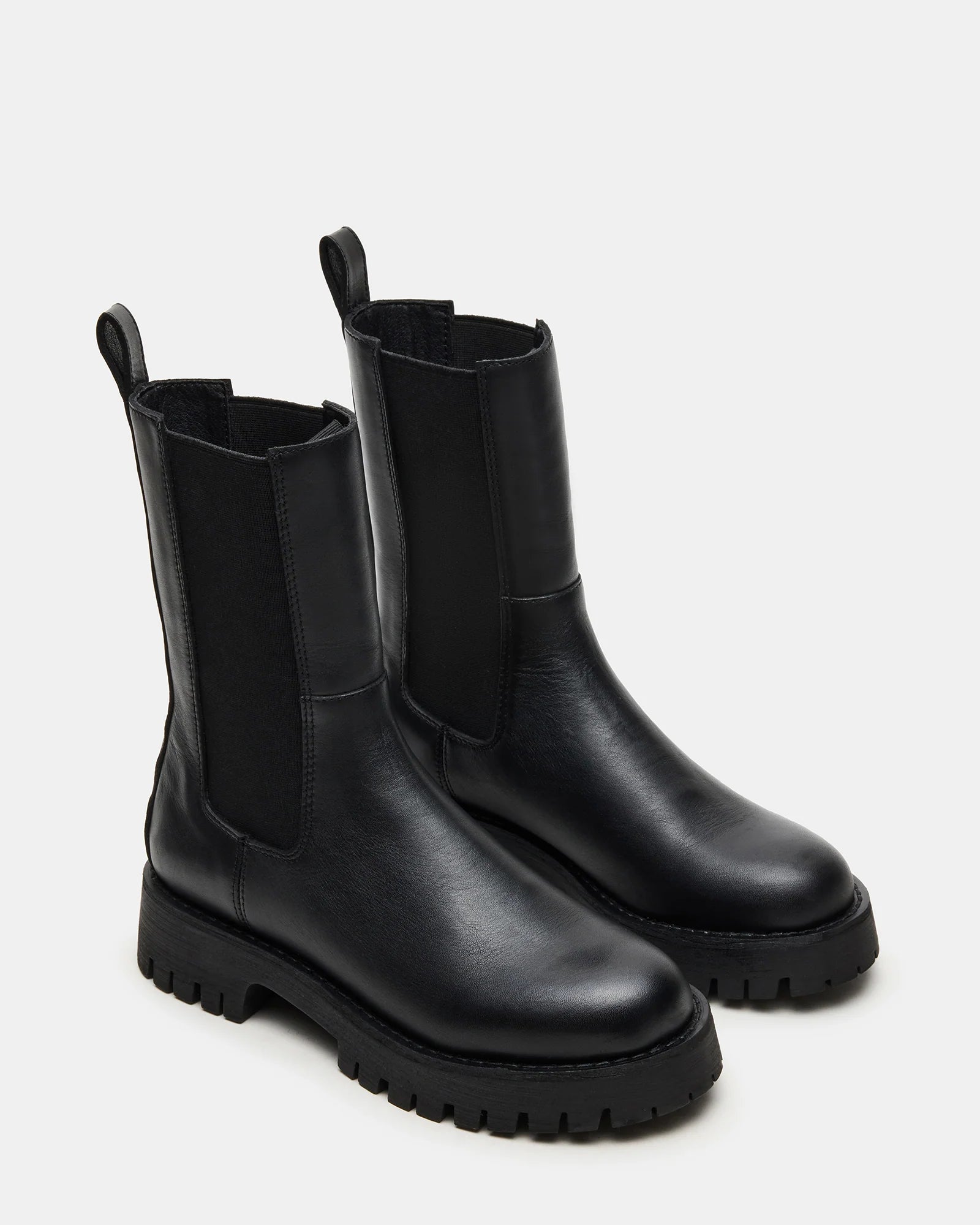 The LOWA BLACK LEATHER platform lug Chelsea ankle boot combines rugged durability with sleek style. Crafted from premium materials, this features a platform lug sole that provides enhanced traction and stability. Its classic Chelsea design with elastic side panels ensures easy on-and-off wear while maintaining a streamlined silhouette. Ideal for both urban and outdoor settings, this boot delivers expert-level comfort and lasting performance.