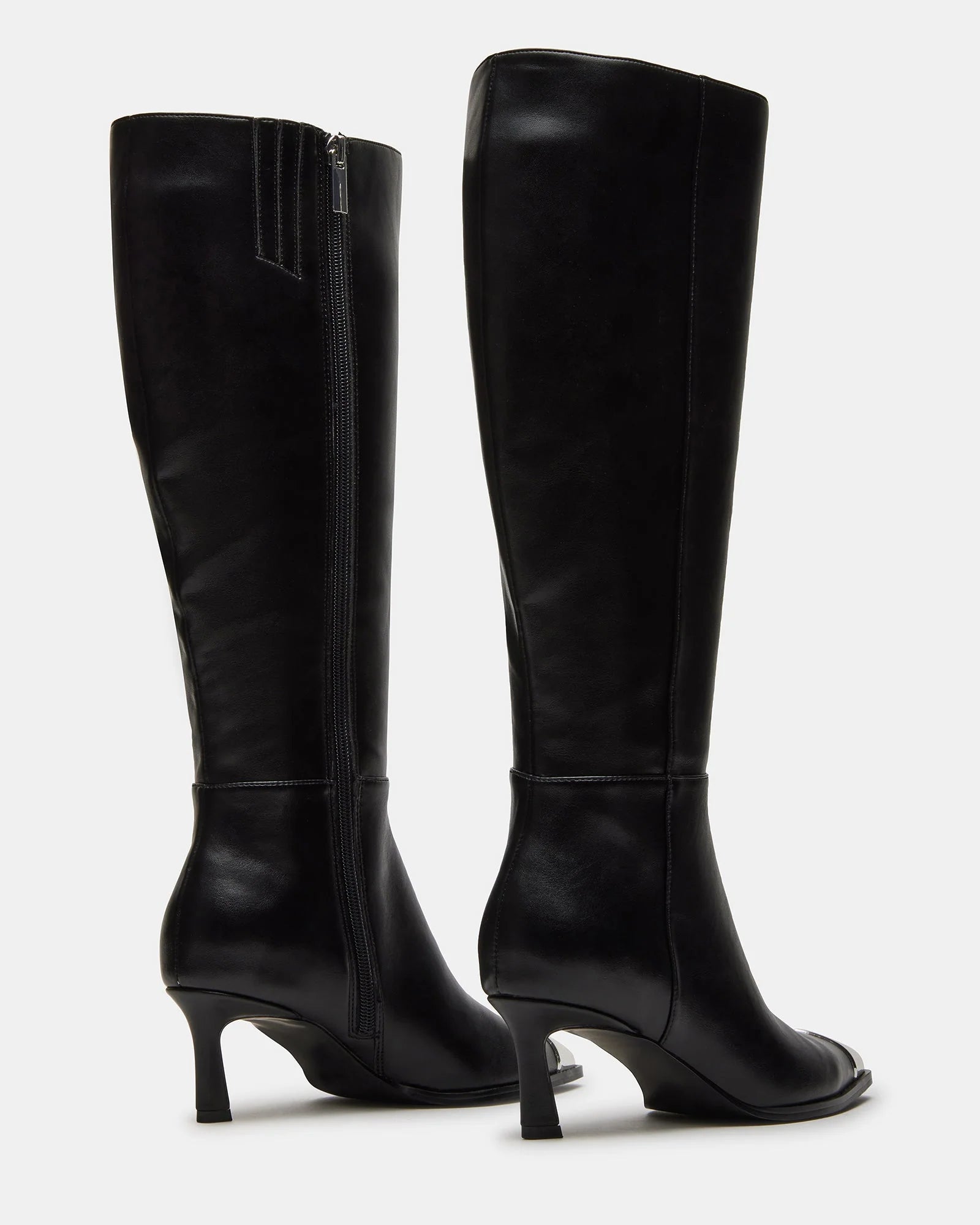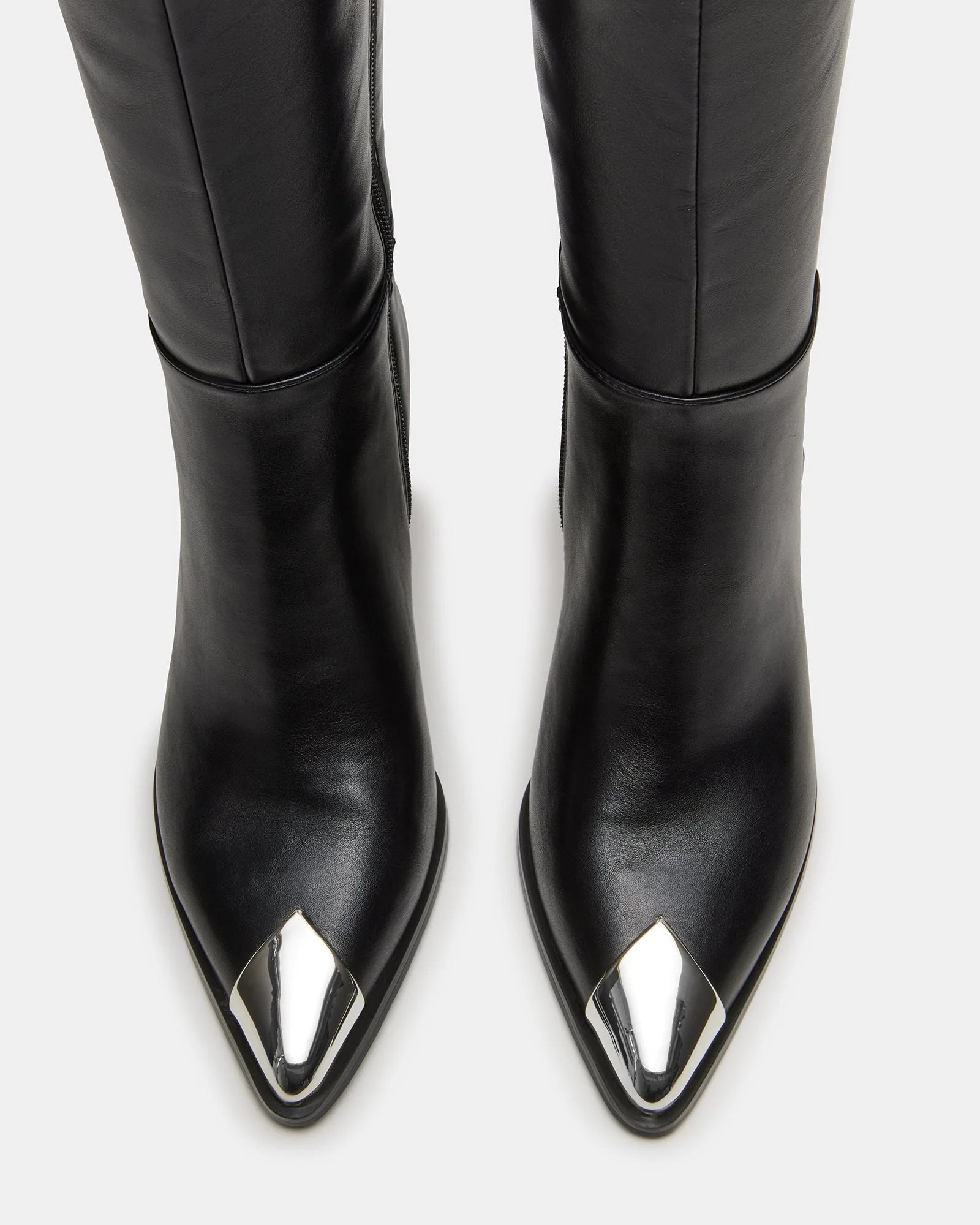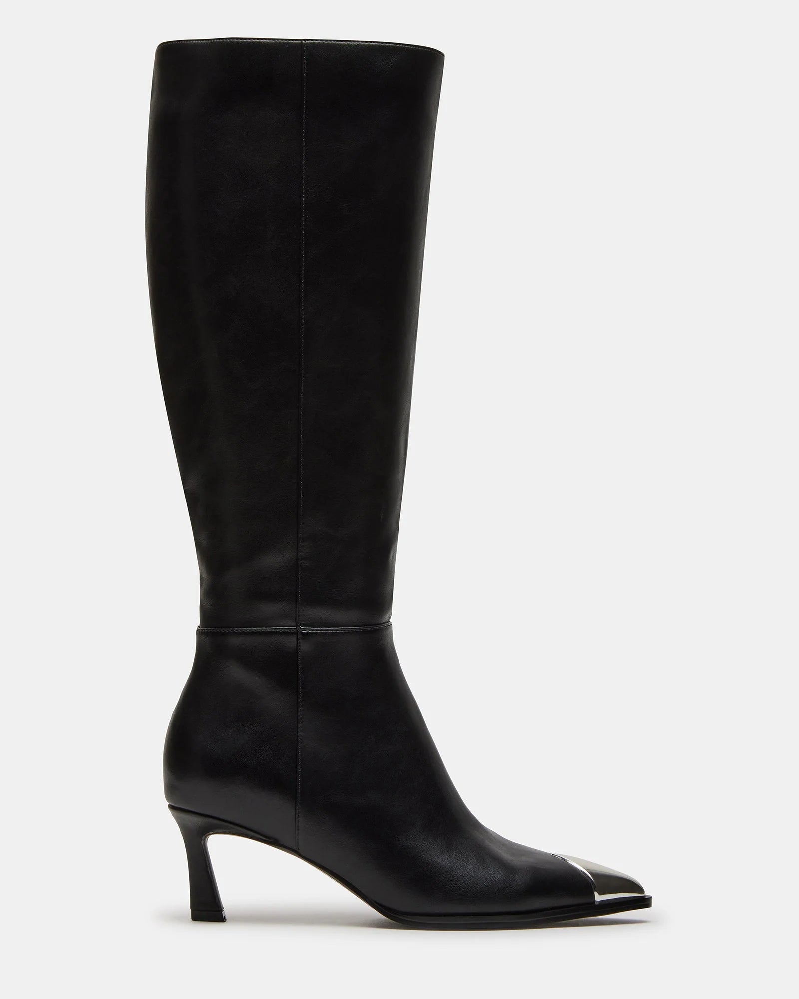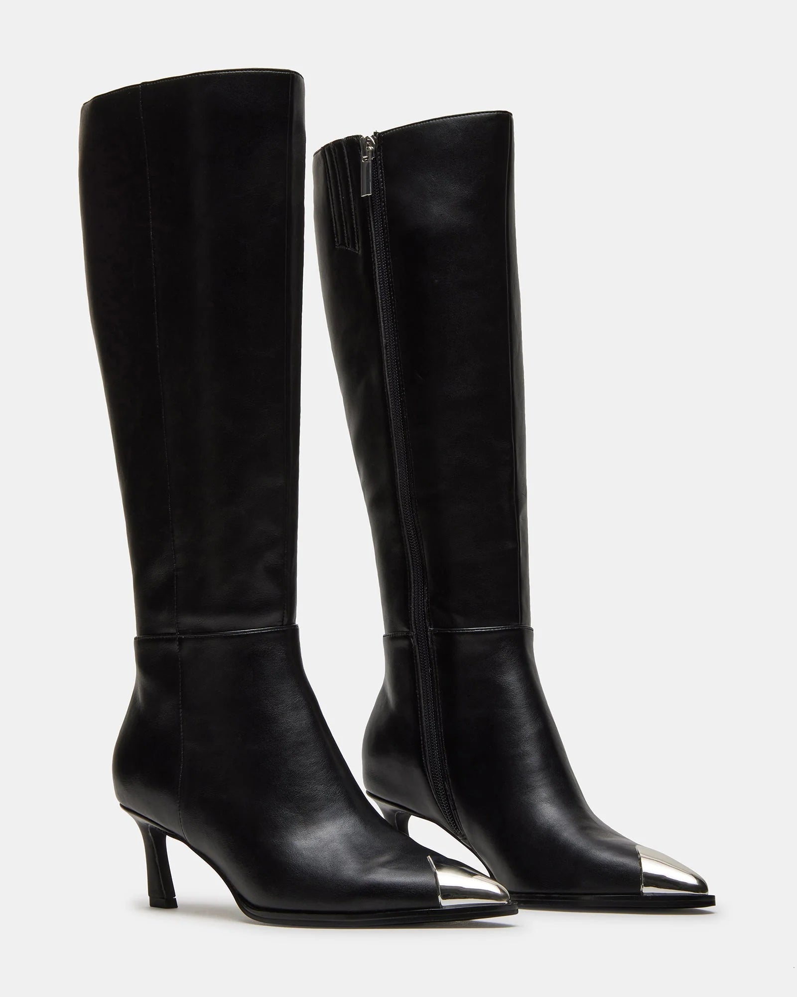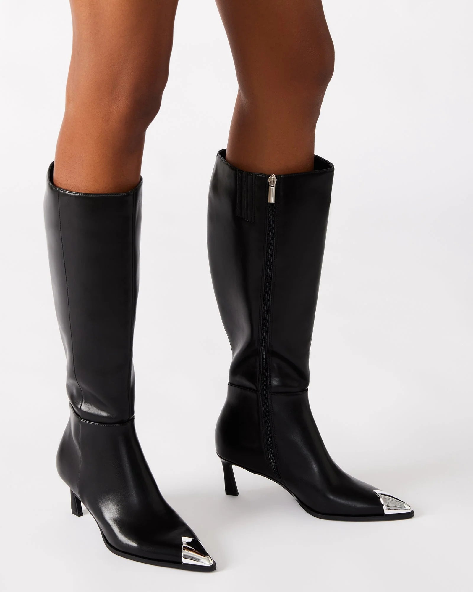 The LUCIANA is a stylish and sophisticated knee-high with a sleek and pointed toe. Its silver toe cap adds a touch of elegance to any outfit. Expertly crafted for comfort, these boots are perfect for any occasion.