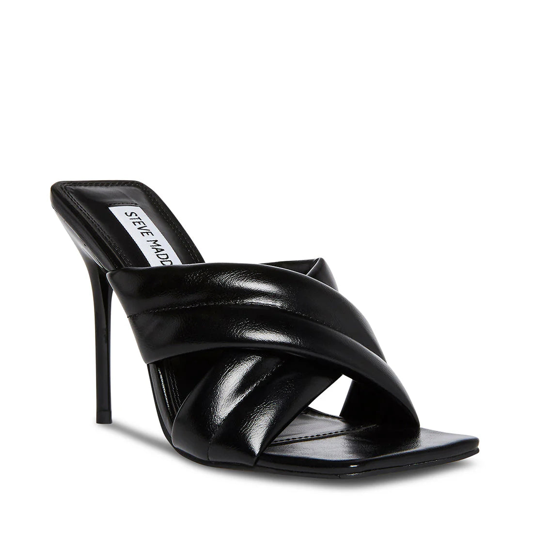 Trendy cushioned straps soften this sandal’s look and feel, while a sharp stiletto heel brings the sex appeal!