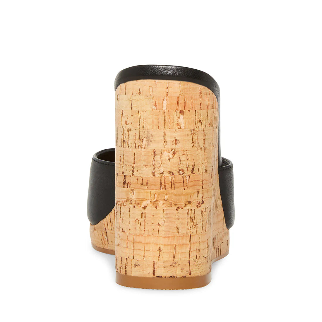 A cork wrapped serves as the base for the MARVELOUS platform sandals, with a single strap slide design completing the clean look.