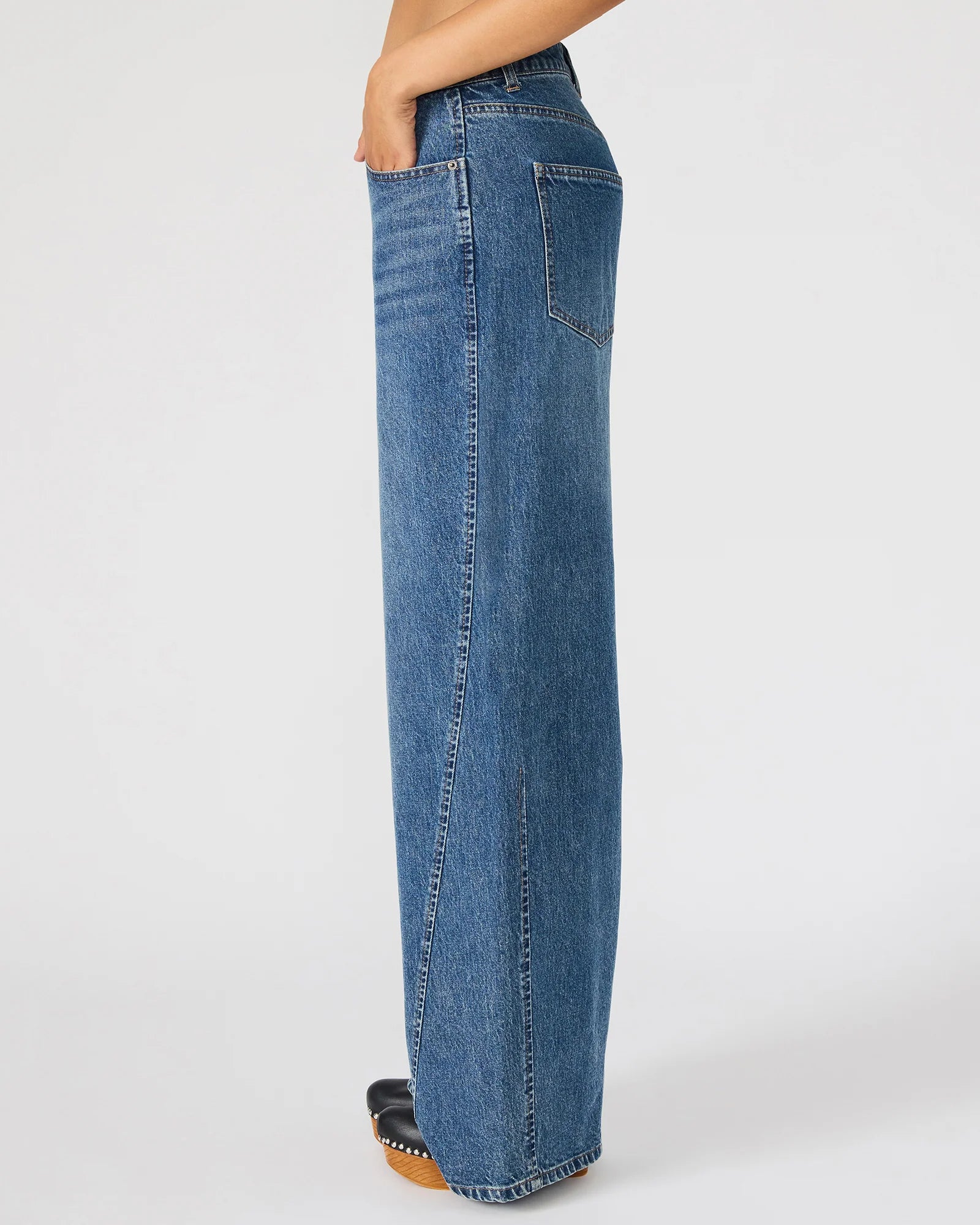 These wide-leg MELLIE denim combine style with practicality. Featuring functional front and back pockets, they offer convenient storage without compromising the sleek silhouette. The button and zipper closure ensures a secure fit, making them a versatile addition to any wardrobe seeking both comfort and contemporary design.