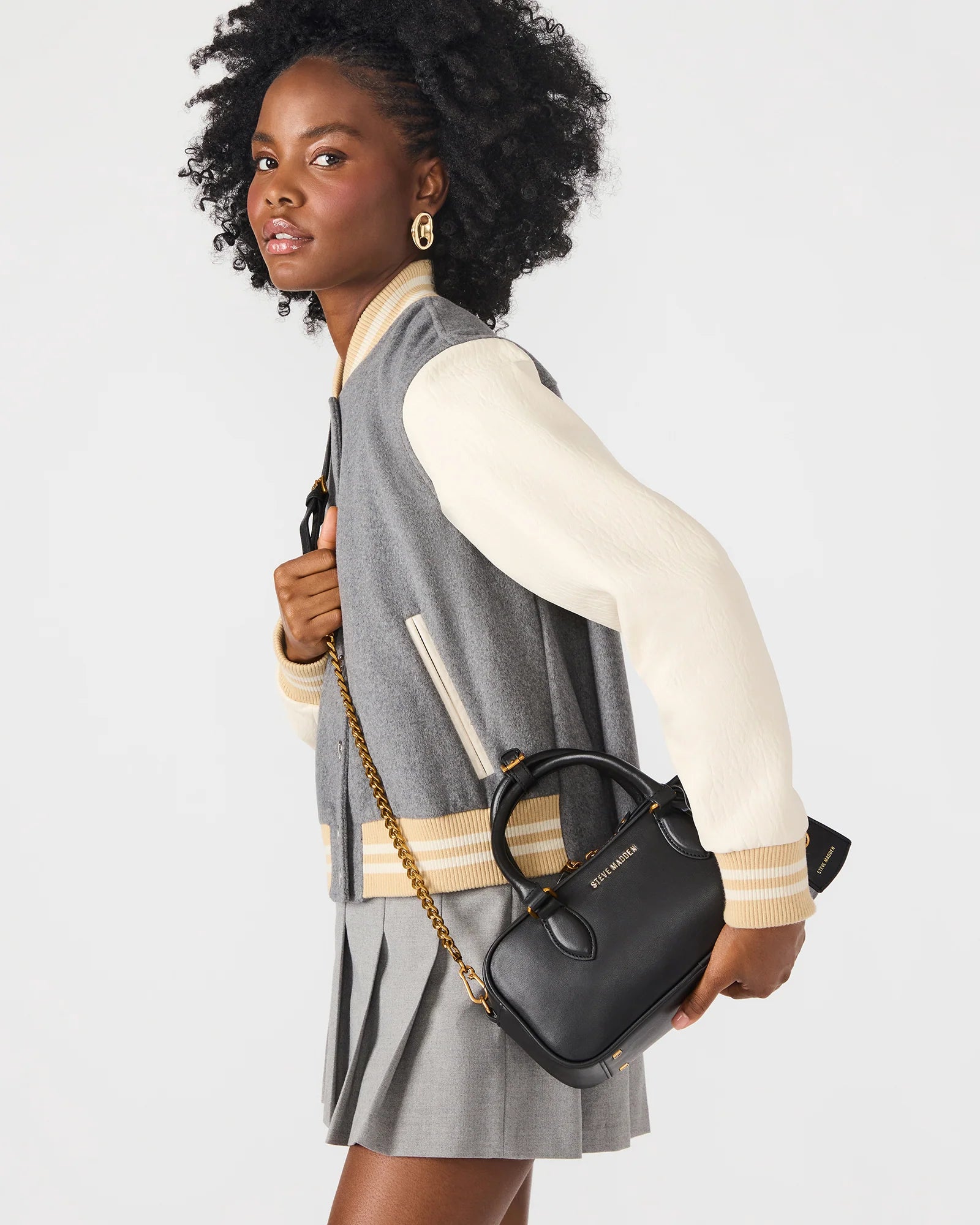 The MERIT bag combines functionality with sophisticated style. This versatile tubular top-handle crossbody features distinctive buckle detailing, dual zipper pulls for enhanced accessibility, and secure top zipper closure. The signature logo embellishment adds a refined touch of brand authenticity to this expertly designed accessory.