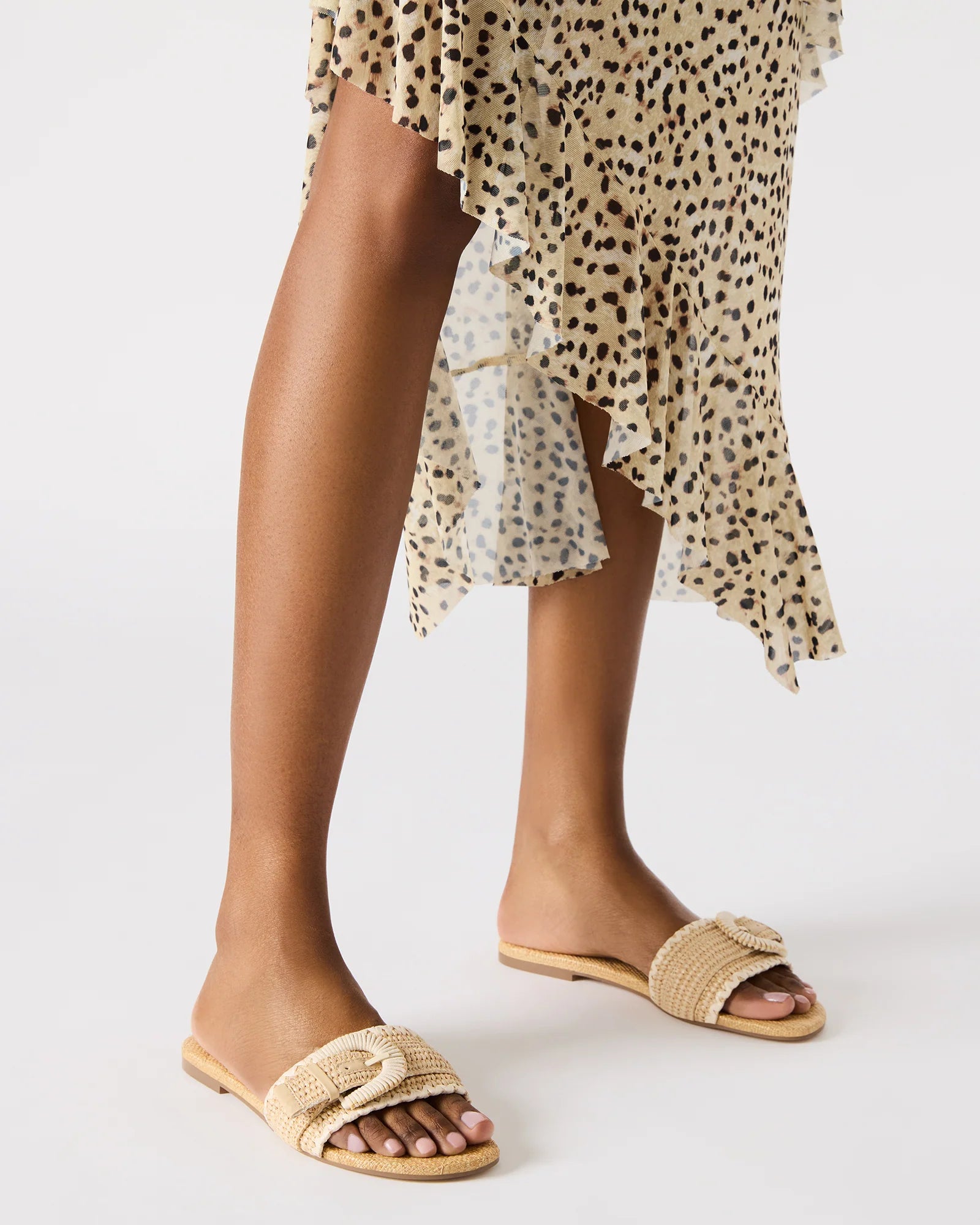 The MERLA flat slide is designed for both style and comfort. The decal on the strap adds a touch of elegance to your step. Perfect for any occasion, these sandals offer the perfect balance of fashion and functionality.