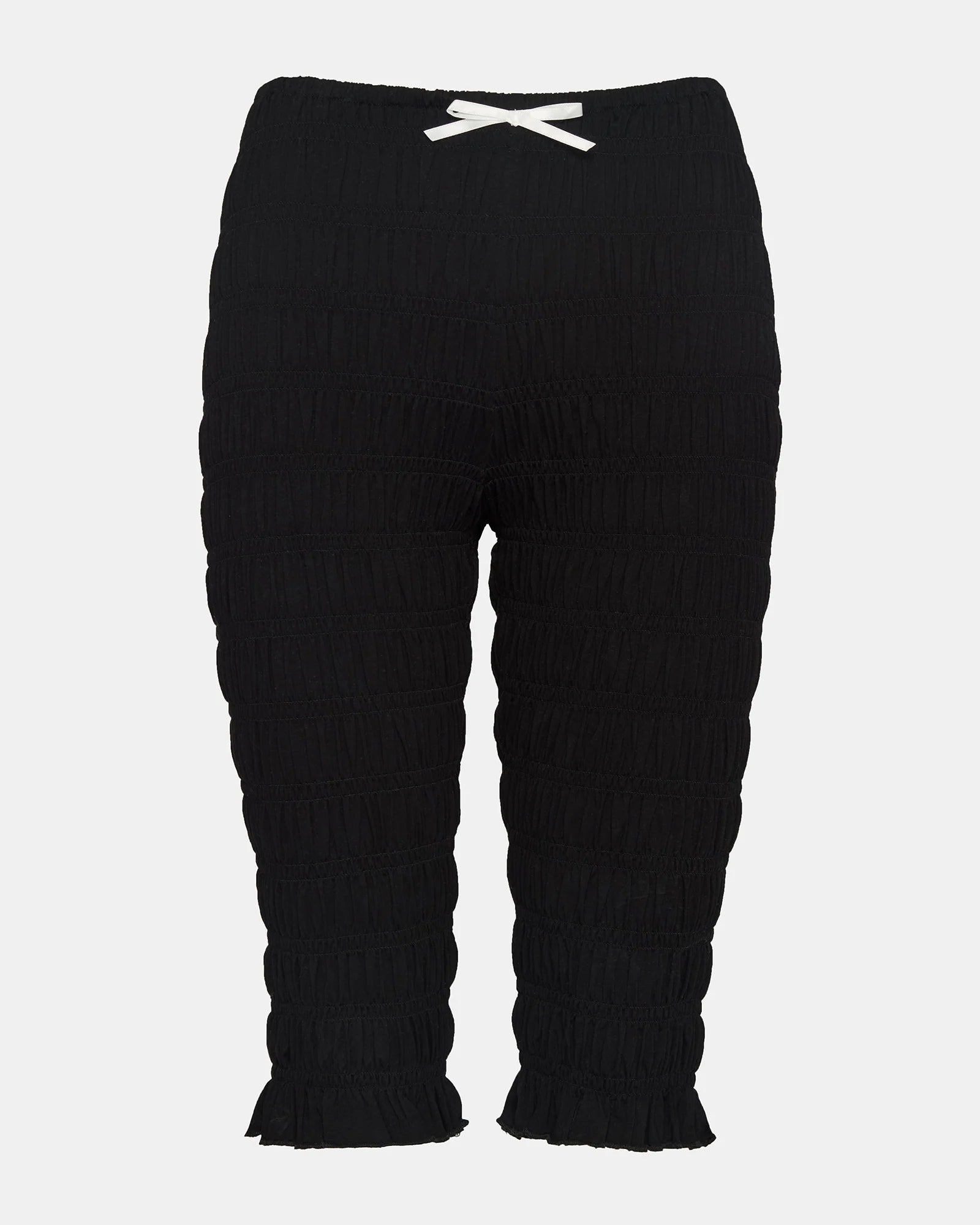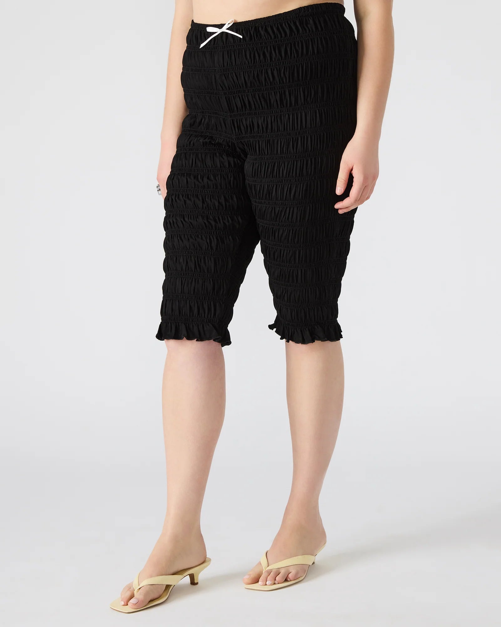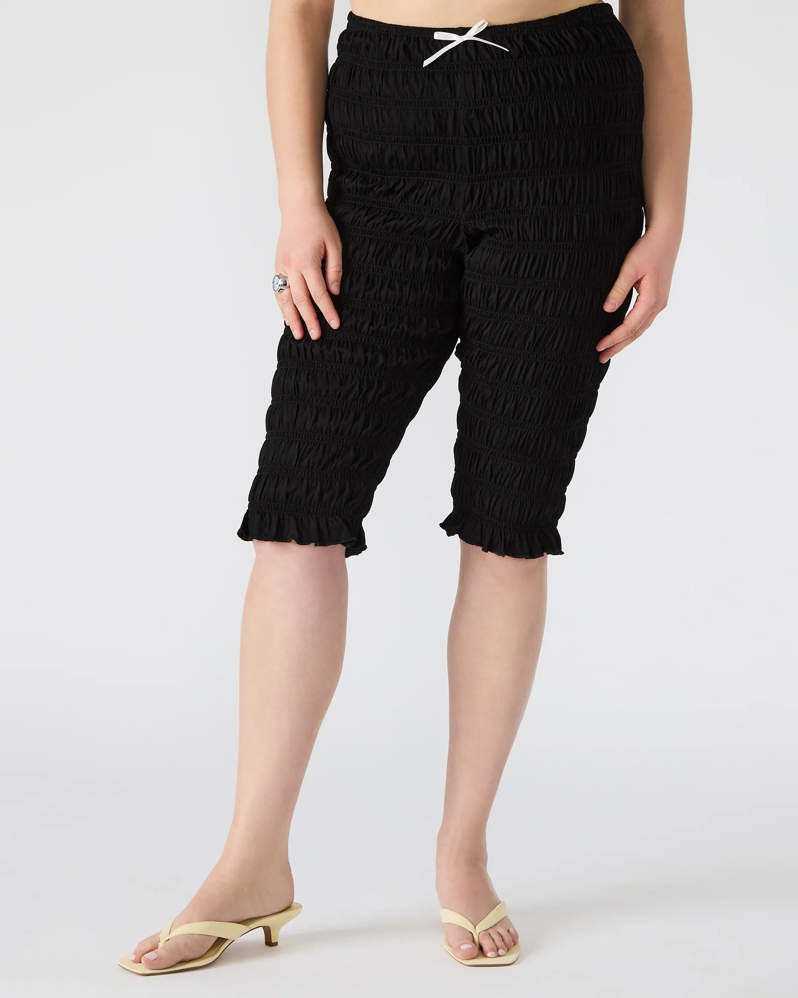 Designed for effortless style, the MISTY features a pull-on design with ruched detailing and a feminine bow accent. Made for comfort and elegance, these capri pants will elevate any outfit.