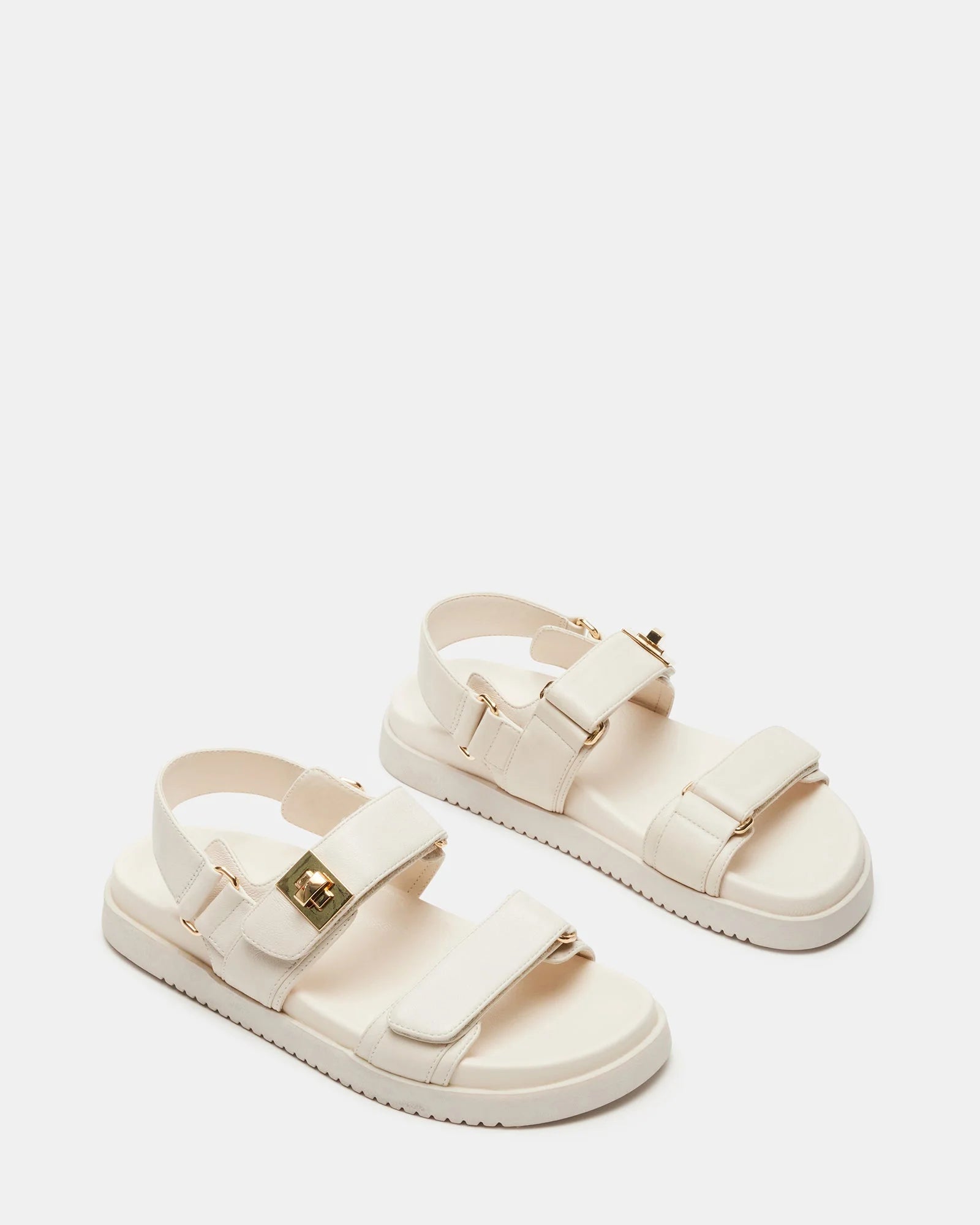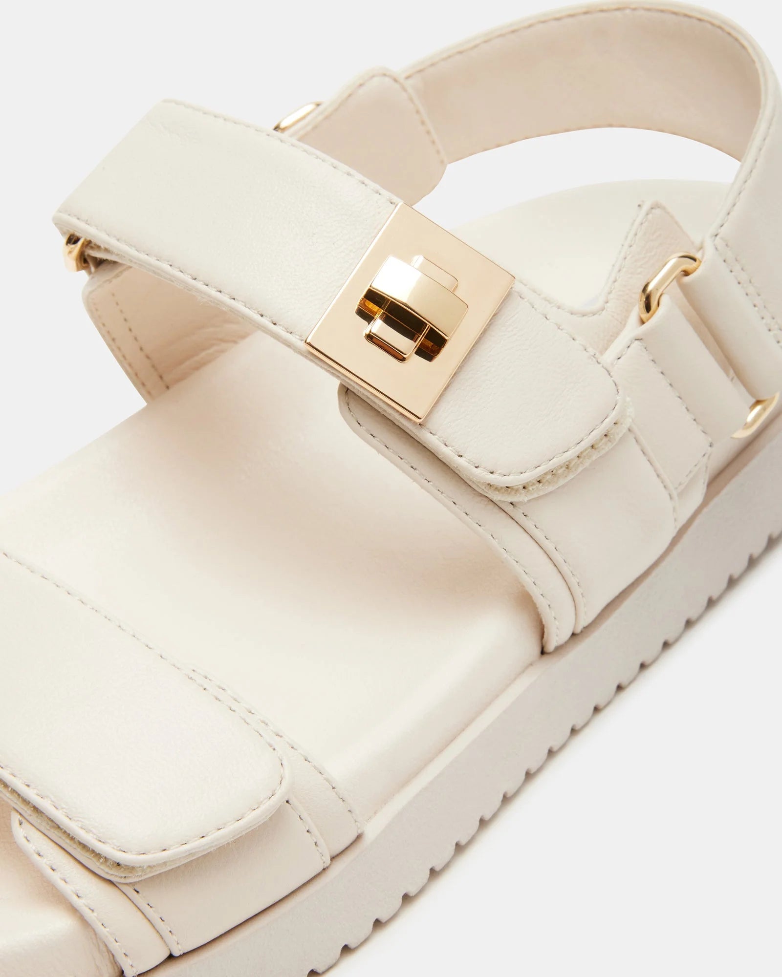 The MONA takes the classic three-strap design with a molded footbed and a flat sole and elevates it with a leather construction and substantial gold-tone hardware.