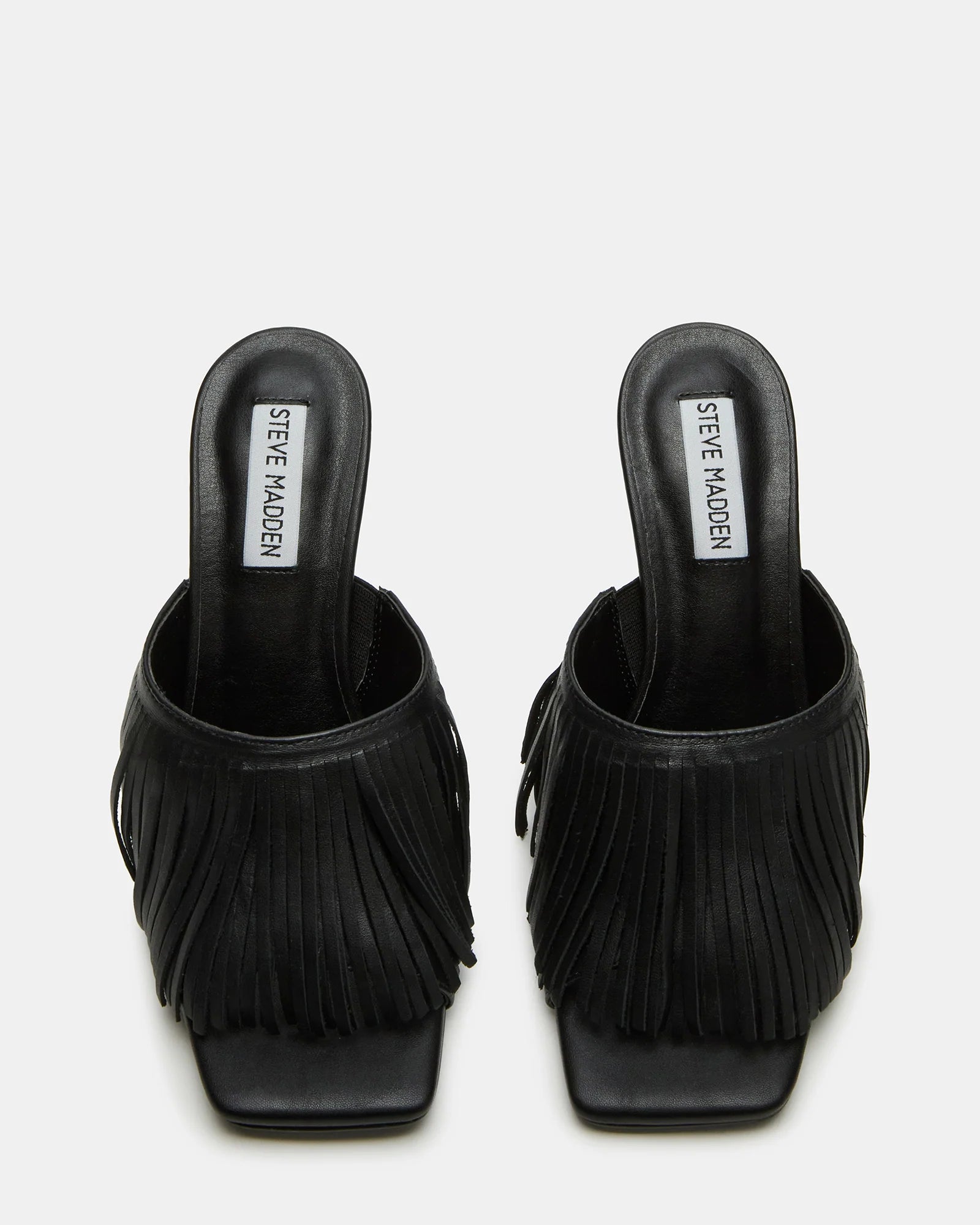 Expertly crafted with a sleek square-toe and stiletto , the MORINA heel offers a touch of sophistication to any outfit. The open toe and fringe design add a unique flare, making it a versatile and chic addition to your wardrobe.