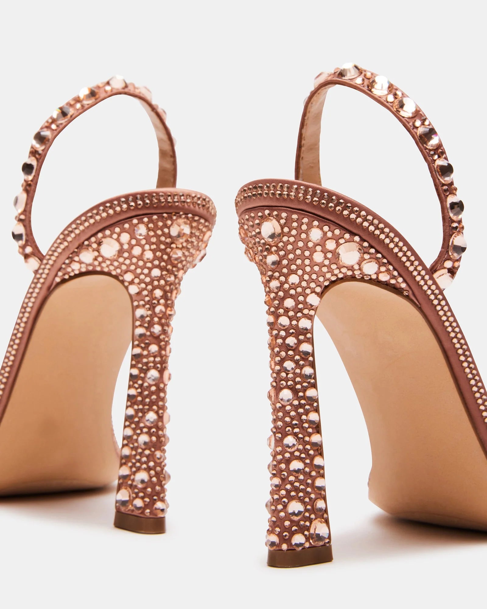 The NEEKA features a flared with slim straps over the toe and around the back of the heel. Tiny rhinestones are set around the midsole, plus the heel and straps are detailed with rhinestones in varying sizes for maximum sparkle.