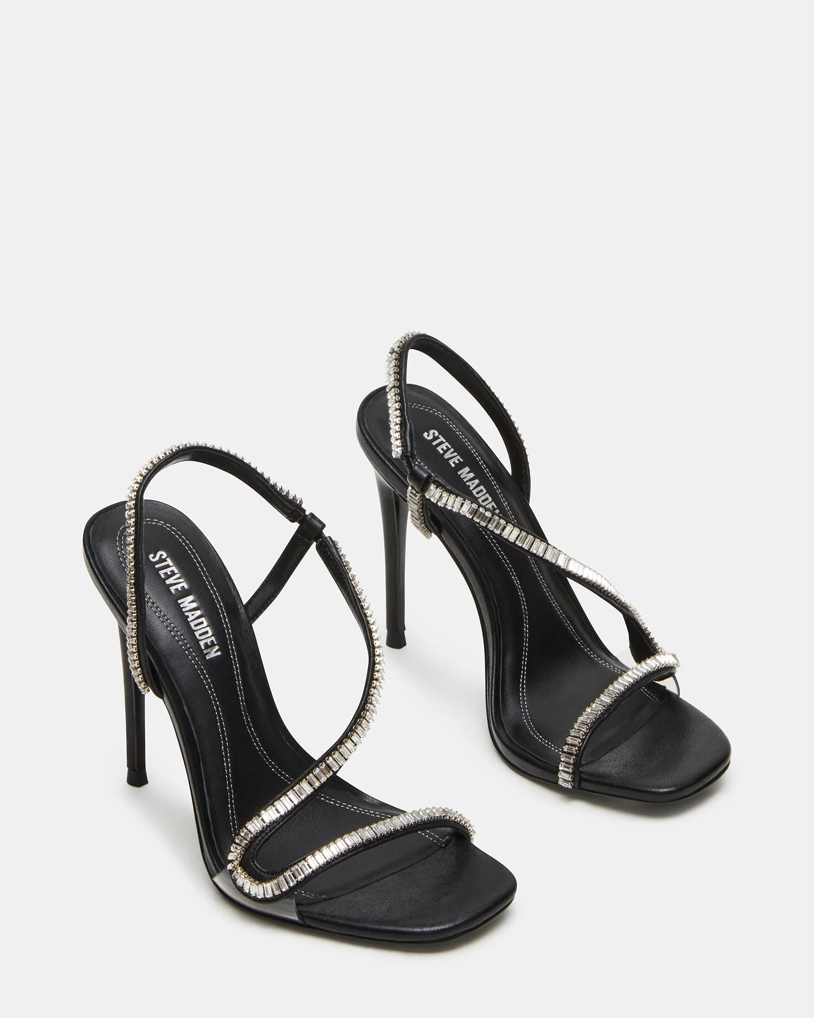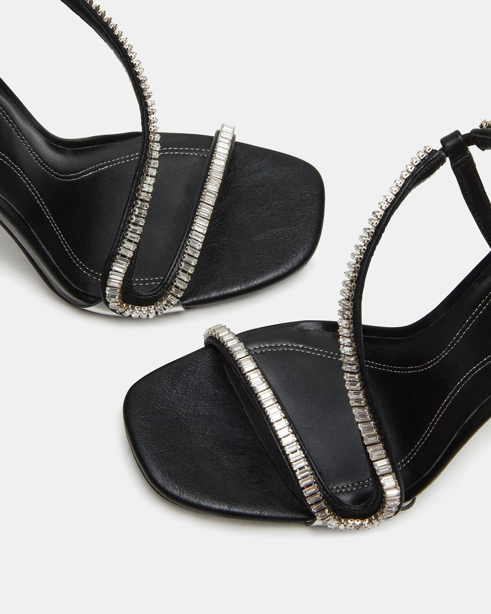 Expertly designed with a stiletto and a unique embellished strappy design, the NESSA shoes combine fashion and function. The square toe provides added comfort and style, making these shoes perfect for any occasion. Elevate your look with these eye-catching heels.